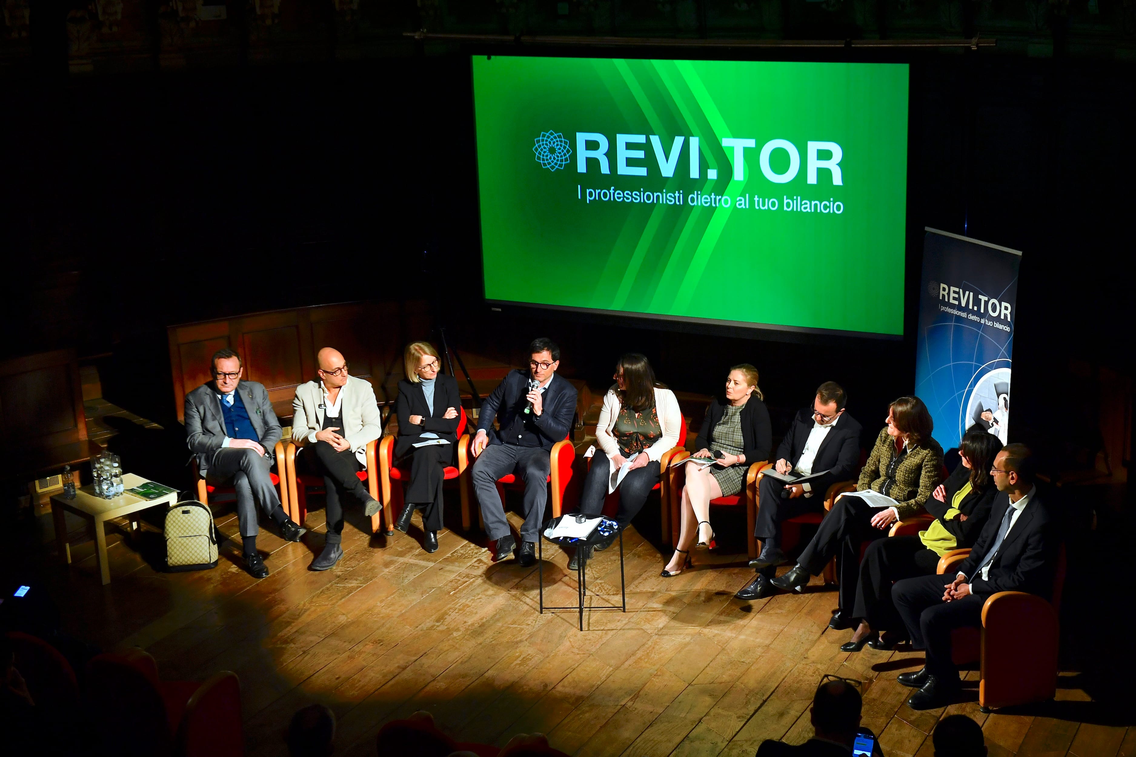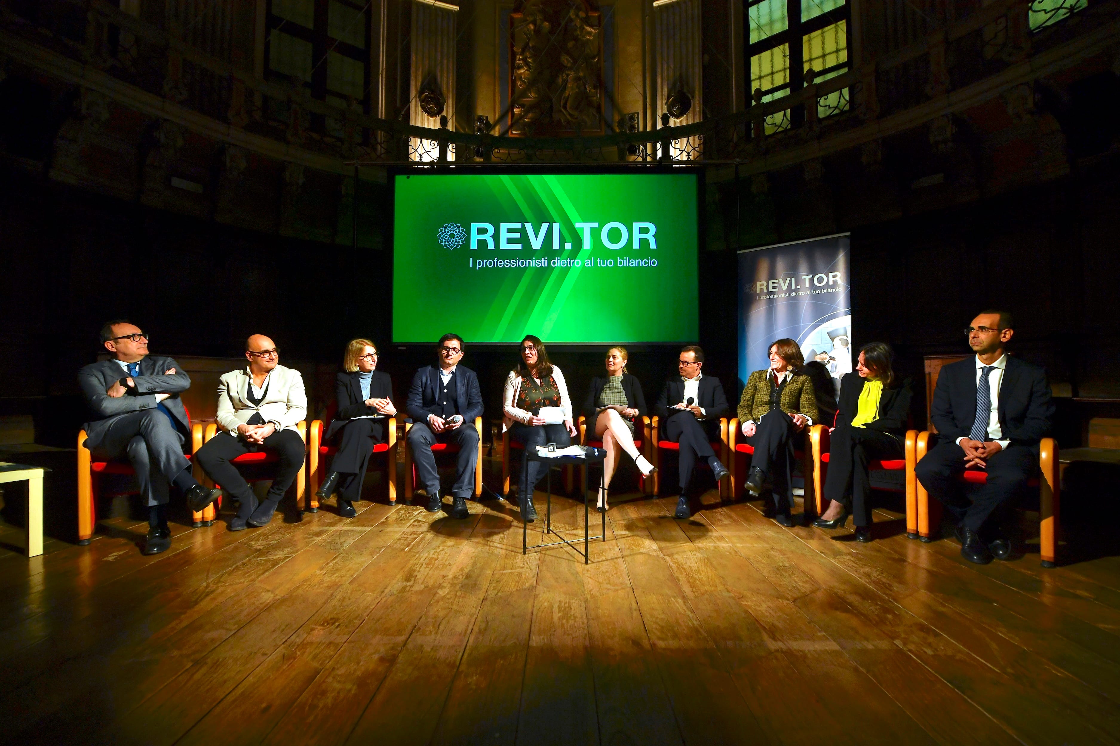Barbara Negro, Senior Partner di REVI.TOR; Alessandro Terlizzi, Direttore della Fondazione OMI, che ha ospitato il Convegno; Mariangela Battisti, Direttore operativo di Fondazione Paideia Ente Filantropico; Francesco Di Ciommo, imprenditore e fondatore di FDC Consulting Digital ESG – Società Benefit; Francesca Culasso, Professore Ordinario di Economia Aziendale e Direttrice del Master D-ESG presso l’Università degli Studi di Torino; Elisa Truant, Professore Ordinario di Economia Aziendale presso il Dipartimento di Management dell’Università di Torino; Marco Piccolo, CEO di Reynaldi Srl, Vice Presidente della Piccola Unione Industriali di Torino e Delegato ESG di Confindustria Piemonte; Luca Asvisio, Presidente dell’ODCEC di Torino; Alberto Bonaccorso, Head of ESG Competitive Landscape per Intesa Sanpaolo.