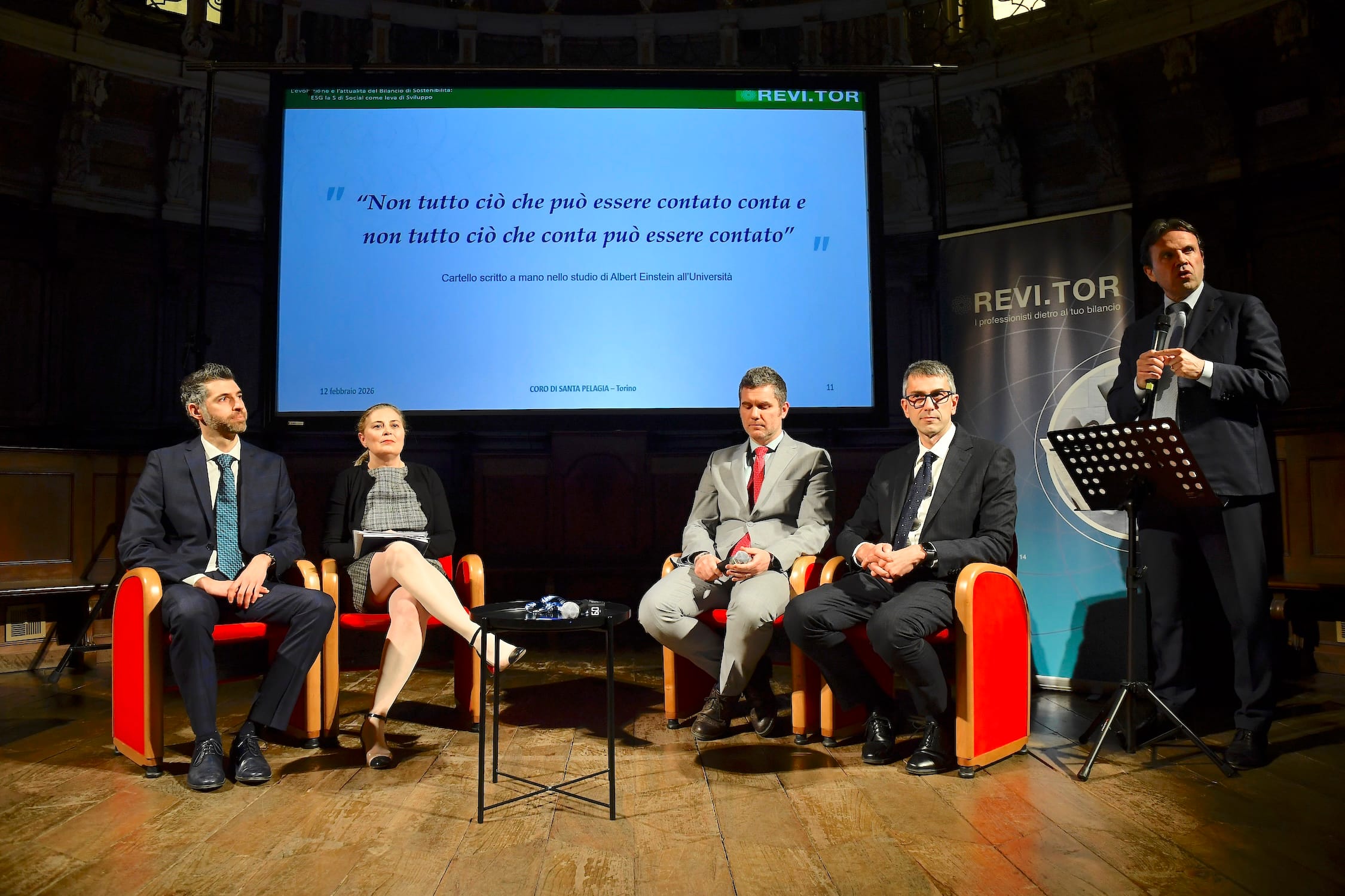 Torino, 12 febbraio 2026 – Si è tenuto oggi, nella prestigiosa cornice del Coro di Santa Pelagia di Via San Massimo 21, il Convegno promosso da REVI.TOR Srl dal titolo “L’Evoluzione e l’Attualità del Bilancio di Sostenibilità: ESG, la “S” di Social come leva di Sviluppo”.